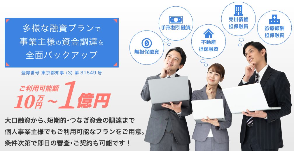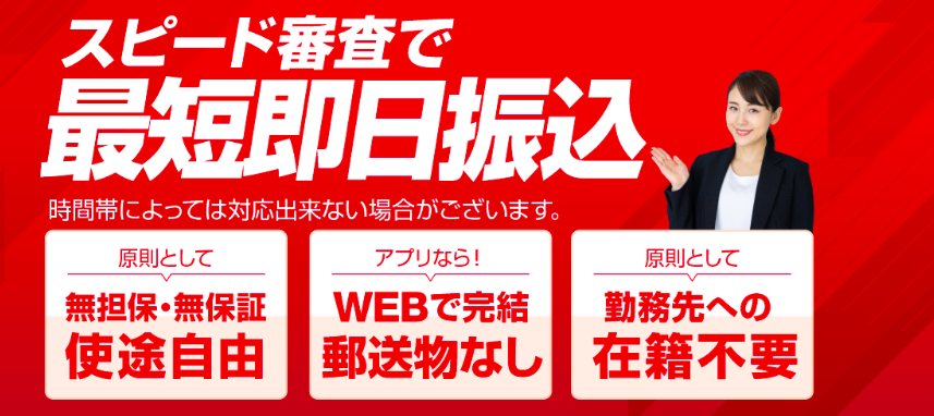 最短即日で審査完了。 即日に資金調達可能。 |